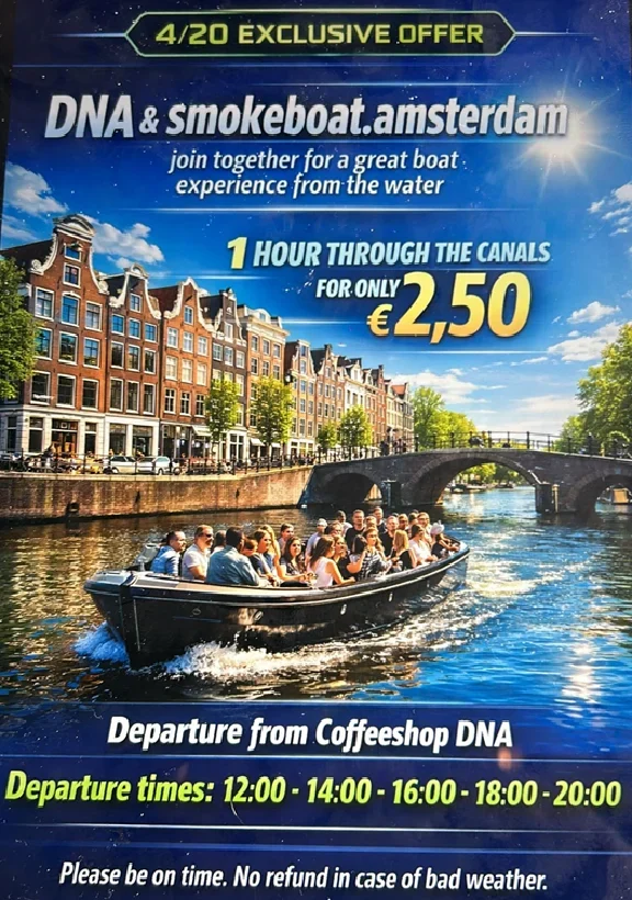 Discover the perfect combination of relaxation and adventure with the best 420 friendly smoking boat tour in Amsterdam
